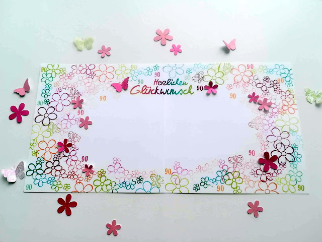 Die Ranken, Blüten und Schmetterlinge sind mit den Framelits-Formen "Schön geschrieben" gecuttet.